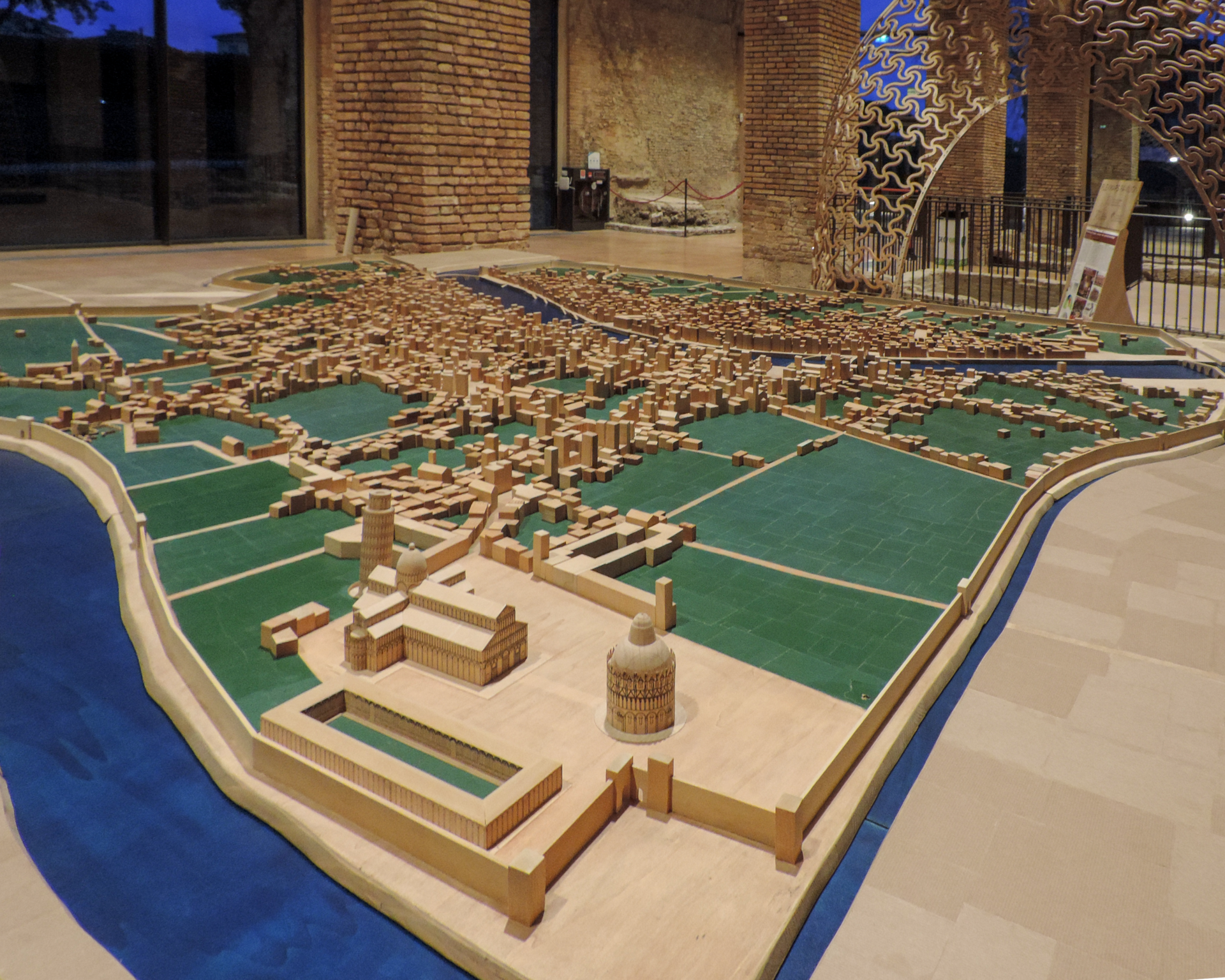 Direttore scientifico della mostra: Prof. Marco Tangheroni direttore del Dipartimento di Medievistica dell’Università di Pisa. Il modello della Citta’ di Pisa nel 1300 è stato esposto anche a La Valletta (Malta) nella mostra “Navigazione del Sapere” organizzata da più Paesi con il contributo della Comunità Europea. Successivamente viene smarrito e ritrovato fortuitamente nel 2020 in condizioni di grave degrado, grazie al contributo di Comune di Pisa e Fondazione Pisa il modello viene restaurato dall’arch. Roberto Masini e da Andrea Martelli tra il 2023 e il 2024.