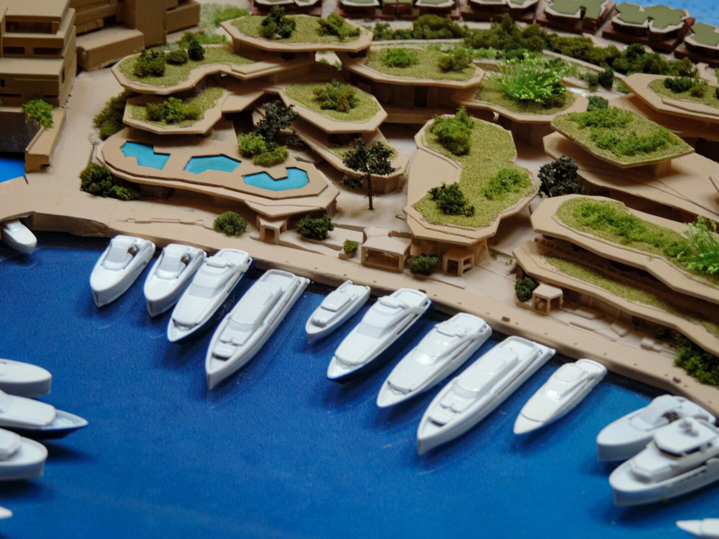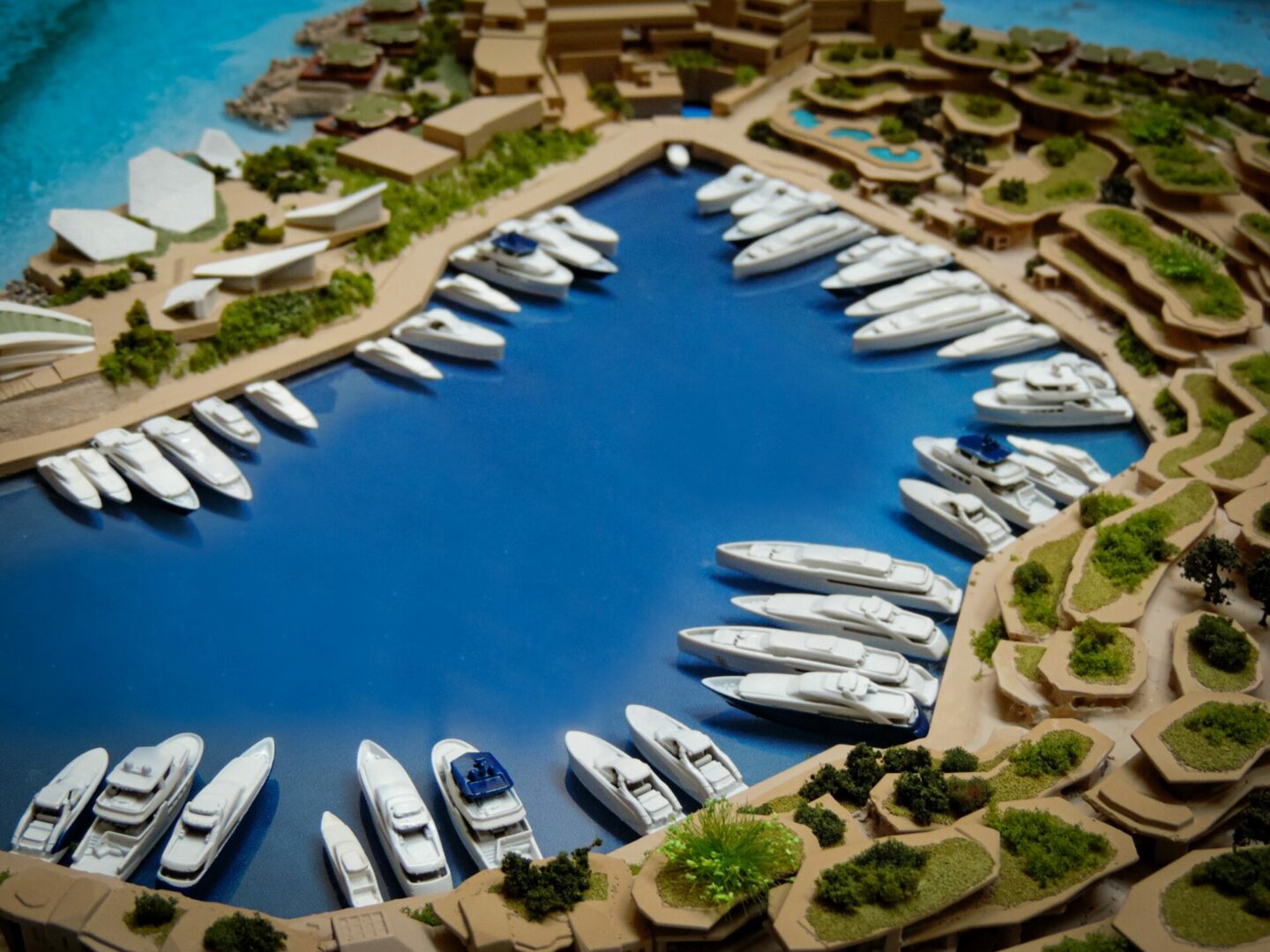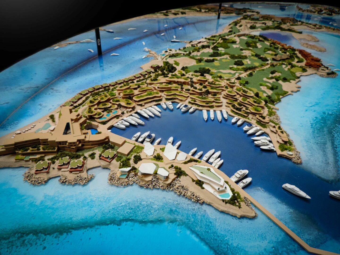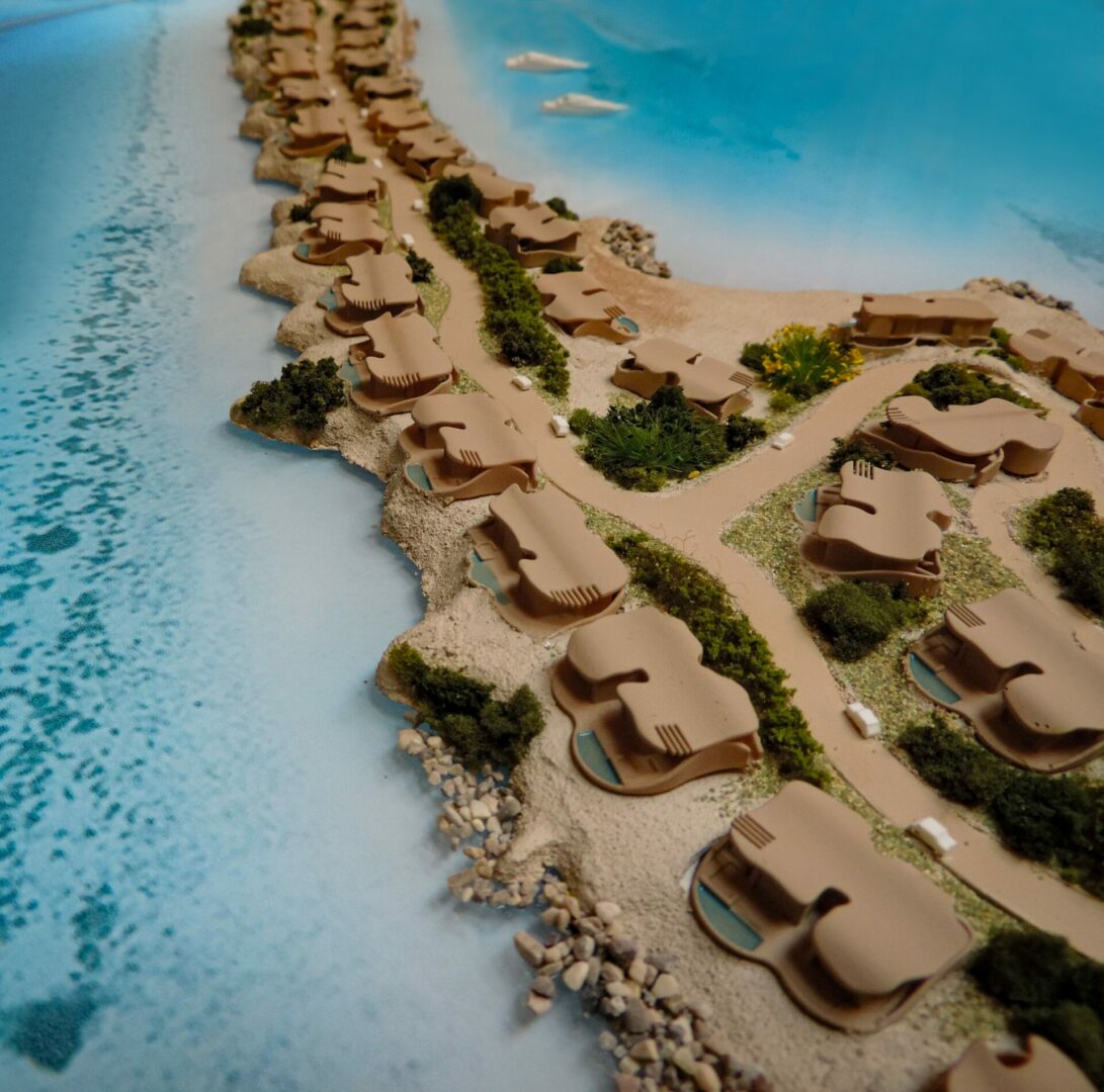 Modello del progetto di Luca Dini SPA per il nuovo insediamento turistico ricettivo nell'isola di Sindalah in Arabia Saudita.